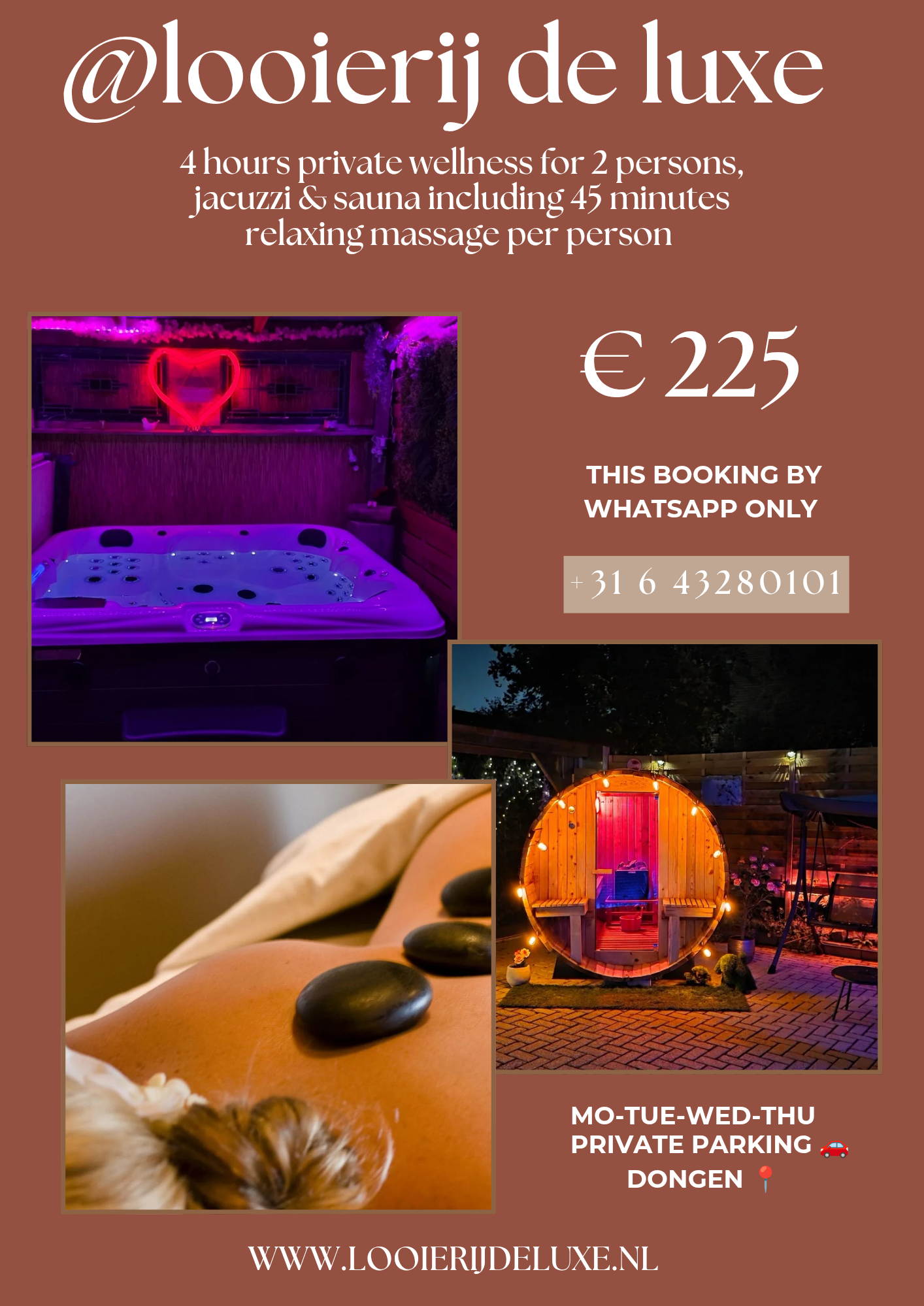 Met drie sfeervolle verdiepingen, een privétuin met jacuzzi en barrelsauna, comfortabele slaapplaatsen tot 6 personen, inclusief 2 kinderen en een baby, is Looierij de Luxe de ideale setting voor een romantisch verblijf voor twee, quality time met het gezin, een ontspannen vriendinnenuitje of een verwenmoment met je beste vrienden.